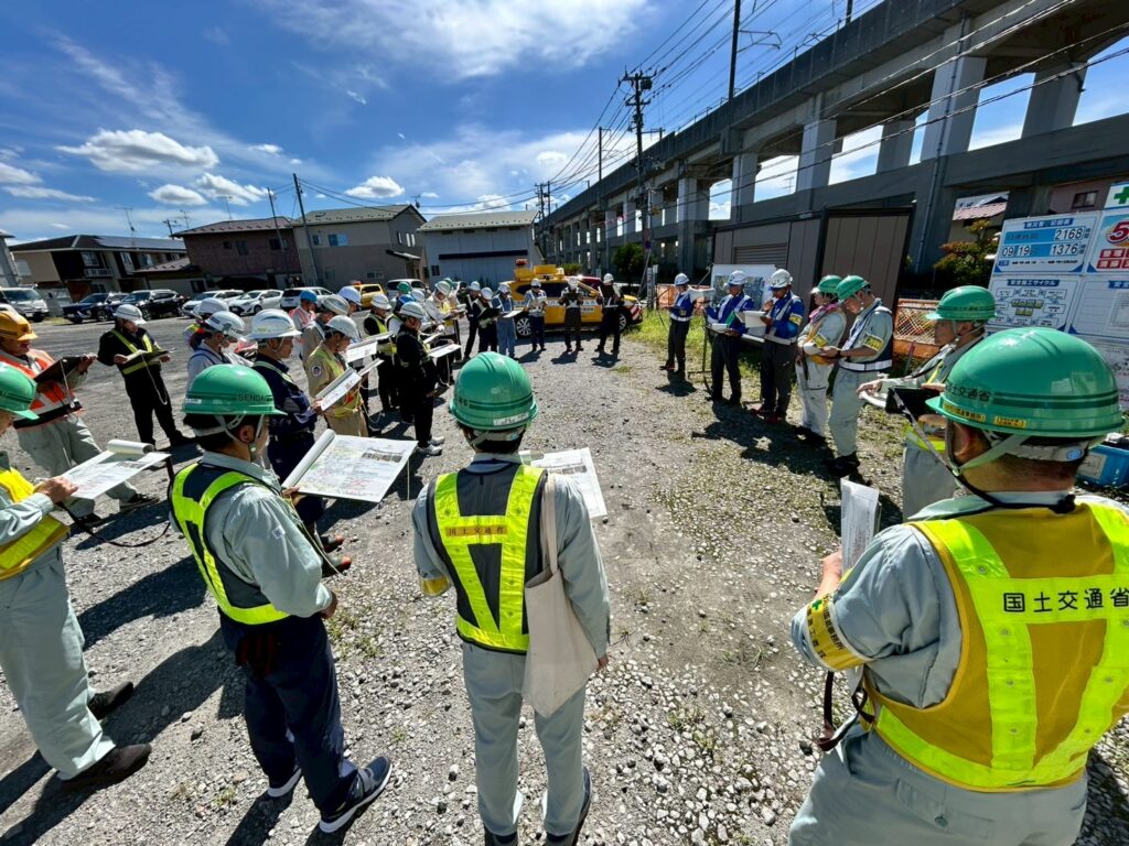 本講習会には、管内の発注者および受注者が参加し、事故防止と安全意識の一層の向上を目的として、施工中の現場を巡視し、安全管理体制や作業環境について多角的な確認を行いました。現場ごとに企業混合での意見交換を行い、課題の共有と改善に向けた協議を通じて、安全管理の水準を高める有意義な機会となりました。
