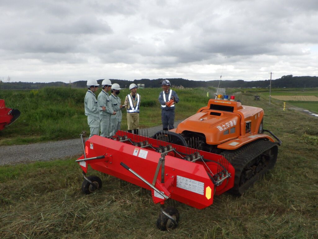実習では、集草機や建設作業機械の操縦、河道掘削の見学、危険予知活動、CIMデータを活用した工法の説明、土のう袋詰め、ドローン操作など、幅広い体験を通じて建設業の現場を学びました。